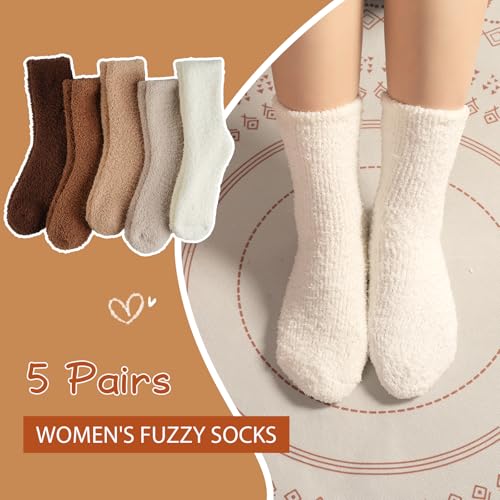Fuzzy Socks for Women Gifts, Fluffy Cozy Plush Soft Slipper Socks for Fall Winter Christmas Warm Sleeping Home 5/6 Pairs 5