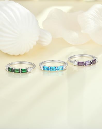 YL Cushion Princess Emerald Cut Eternity Ring for Women, Solid 925 Sterling Silver 18K White Gold Plated Rectangular Birthstone Stacking Jewelry 5