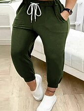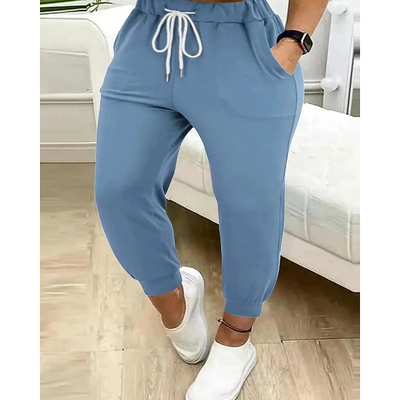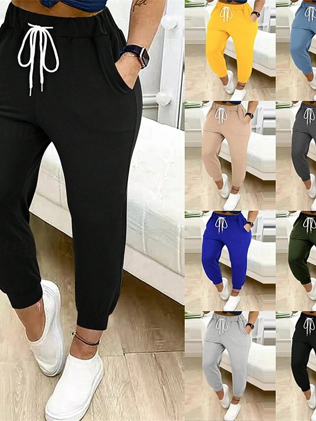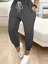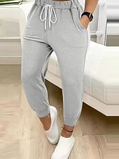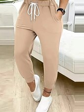 More information about Women's Chinos Straight Streetwear Casual Ankle-Length Natural Plain Drawstring Comfortable Street Holiday Daily Wear Light Sky Blue Black Green ash-colored Fall Regular Fit