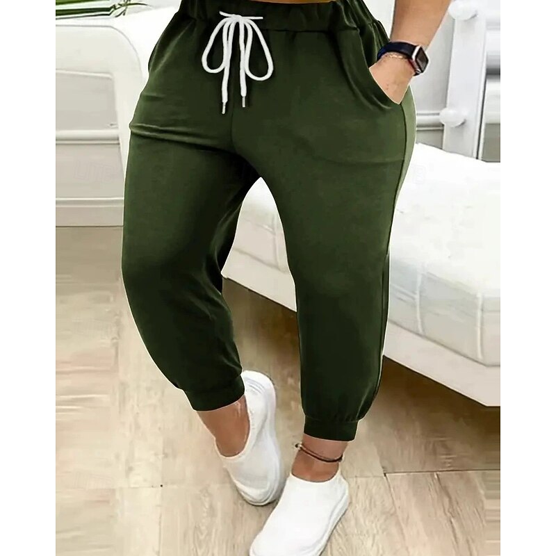 Women's Chinos Straight Streetwear Casual Ankle-Length Natural Plain Drawstring Comfortable Street Holiday Daily Wear Light Sky Blue Black Green ash-colored Fall Regular Fit 1