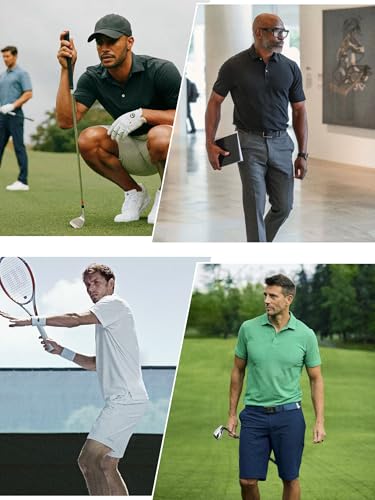 • Material: Mens polo shirts are made of 100% polyester,which offers a soft smooth feel with plenty of stretch to let you swing and flex without restriction.