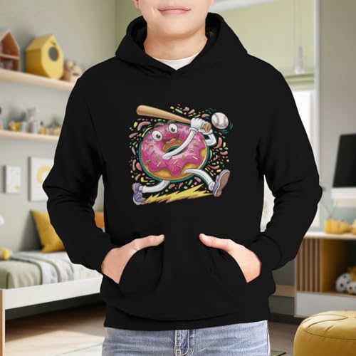 HOT ! Kids Funny Donut Baseball Player Boys Girls Lightweight Kangaroo Pocket Fleece Hoodies