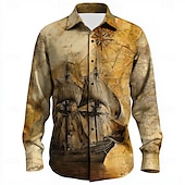 More information about Men's Nautical Sailboat Shirt Button Up Shirt Casual Dress Shirt Long Sleeve Vintage Retro Vacation Daily Streetwear Summer Spring Turndown 3D Print Collared Shirts Khaki