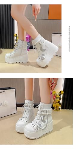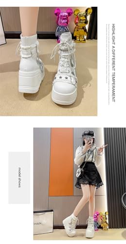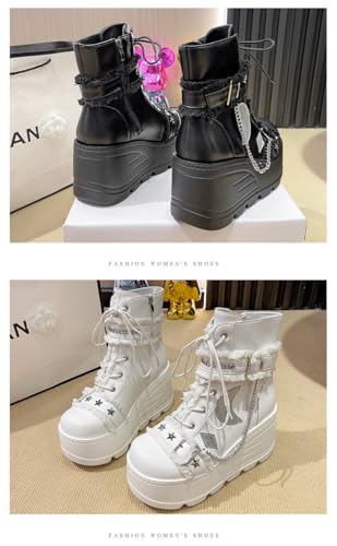 Cute Emo Combat Boots for Women Platform Chunky Grunge Goth Rave Punk Booties Wedge High Heels with Chains Stars Moon Non Slip Shoes Y2K Fashion Streetwear Parties Spring Summer Fall Outdoors 5