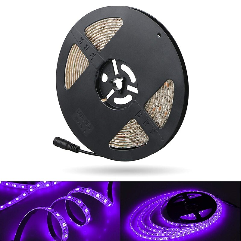 HOT ! 16.4Ft 5m LED Strip Light Waterproof Flexible Light UV Black Light 395-405nm 2835 8mm LED Flexible Strip DC12V for Indoor Fluorescent Dance Party Stage Lighting Body Paint