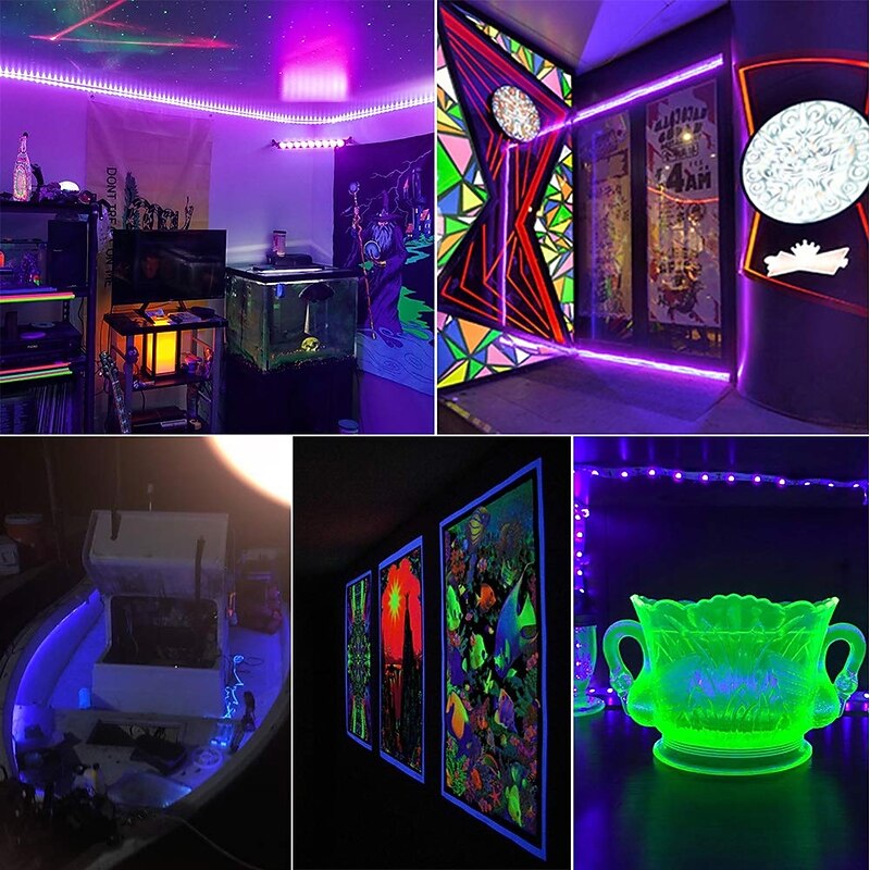 16.4Ft 5m LED Strip Light Waterproof Flexible Light UV Black Light 395-405nm 2835 8mm LED Flexible Strip DC12V for Indoor Fluorescent Dance Party Stage Lighting Body Paint 9