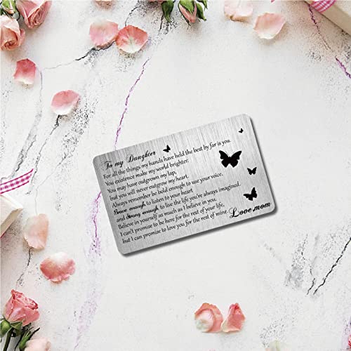 CREATCABIN to My Daughter Wallet Card from Mom Engraved Wallet Insert Inspirational Metal Wallet Card Mini Love Notes Gift for Women Her Birthday Graduation Wedding Christmas 7