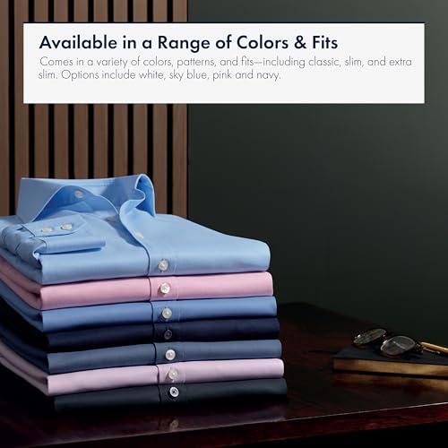 • FITTED COMFORT WITH FREEDOM TO MOVE. Designed for real life, this men’s dress shirt features a split back yoke for natural shoulder movement—no more feeling stiff or restricted. Choose from classic, slim, or extra slim fits and cutaway or classic collars. This mens formal shirt adapts to every occasion, from weekday meetings to weekend events. Once you try it on, you'll wonder how you wore any other shirt.