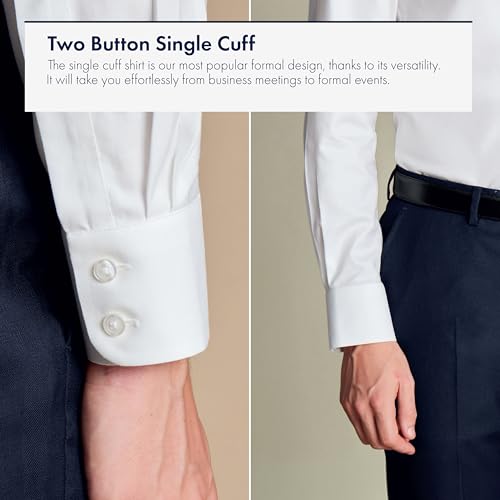 • ELEGANT TOUCHES, DOWN TO THE COLLAR STAYS. Charles Tyrwhitt knows a formal shirt should feel as good as it looks. That’s why this white formal shirt for men comes with complimentary brass collar stays to keep things sharp. The twill weave adds understated detail to this versatile mens suit shirt, perfect for pairing with ties, jackets, or left open at the collar. Because every mens dress shirt staple deserves a touch of luxury.