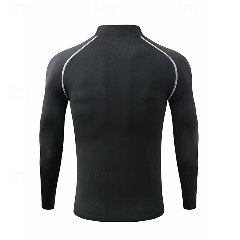 Men's Running T-Shirt Compression Shirt Long Sleeve Tee Tshirt Casual Athleisure Fall High Neck Color Block Quick Dry Breathable Gym Workout Walking Jogging Sportswear Activewear Black Black+Gray 11
