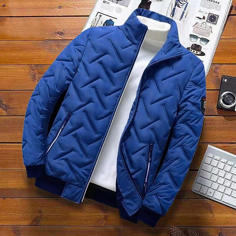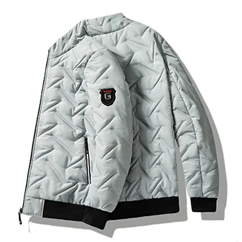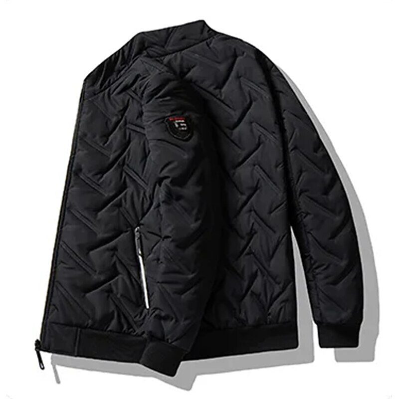 More information about Men's Puffer Jacket Bomber Jacket Quilted Jacket Full Zip Casual Daily Wear Regular Casual Daily Trendy Windproof Warm Fall Winter Stripes and Plaid Black Light Green Royal Blue Gray Puffer Jacket