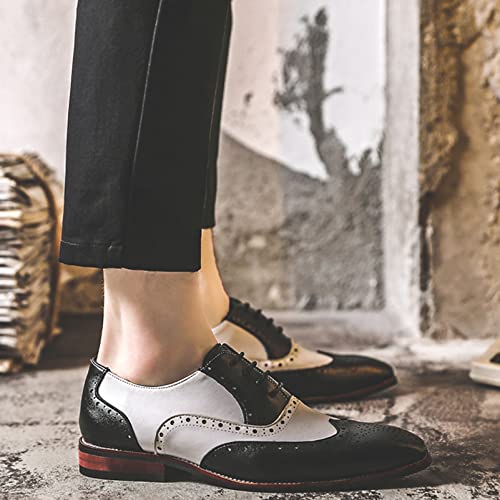 • 【Timelessly Elegant】--- Featuring a classic brogues and oxfords design, these shoes exude sophistication, ideal for formal occasions. The striking color blocking with white stitching adds a touch of modern flair
