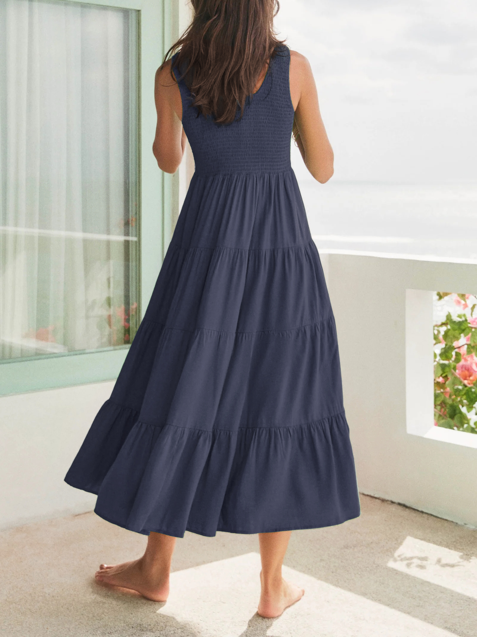 R.Vivimos Womens Summer Linen Tank Midi Dress 2025 Sleeveless Elastic Smocked A-Line Tiered Boho Casual Flowy Beach Sundress 4