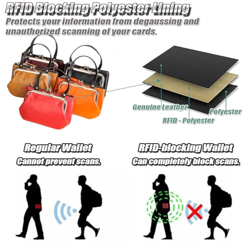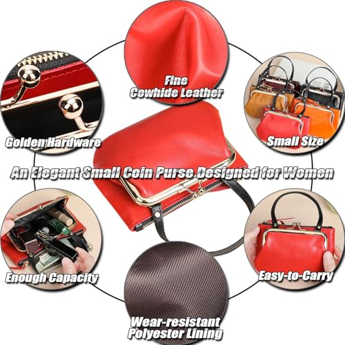 • ✔ Luxurious Finish – The smooth leather surface and gold kiss-lock closure make this wallet exudes vintage elegance, and give it a refined and sophisticated look.