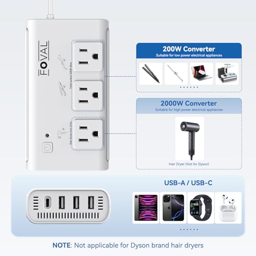 More information about 220V to 110V Travel Voltage Converter, FOVAL 2000W International Power Converter for Hair Dryer, Straightener/Curling Iron with 4-Port USB (1 USB C), Step Down Transformer for US/EU/UK/AU/Italy/India
