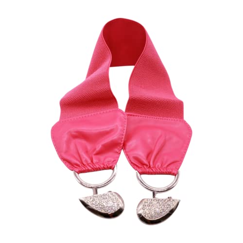 More information about Women Pink Wide Fashion Belt - Hip High Waist Elastic Band Silver Heart Love Buckle Size S M