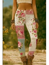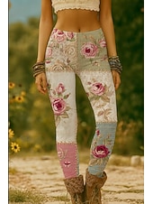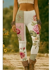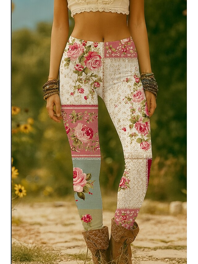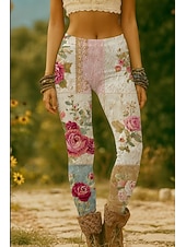 More information about Women's Leggings Vacation Vintage Ethnic Style Full Length High Waist Floral Graphic 3D Print Quick Dry Breathability Soft Stretchy Formal Outdoor Vacation White Pink Blue Green Summer Spring Fall