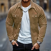 Men's Solid Color Corduroy Shirt Shirt Jacket Overshirt Long Sleeve Casual Outdoor Dailywear Fall Winter Turndown Button-Down Warm Jacket with Flap Pockets Red Blue Green Khaki Gray 1