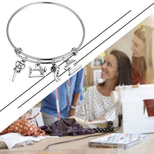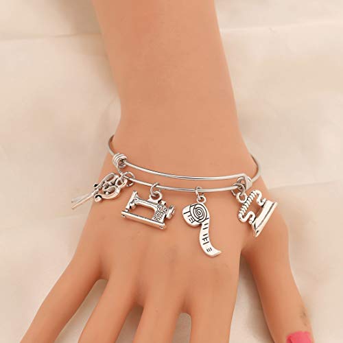 • ✄This sewing themed bangle is adorned with a scissors charm, sewing machine charm, tape measure charm, iron charm. You can show your sewing love with this beautiful quilting bracelet.