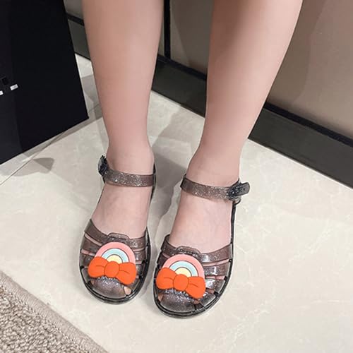 Rainbow Jelly Sandals for Girls Kids Toddler Closed Toe Summer Beach Flats Cute Bowknot Princess Sandal Casual Shoes 6
