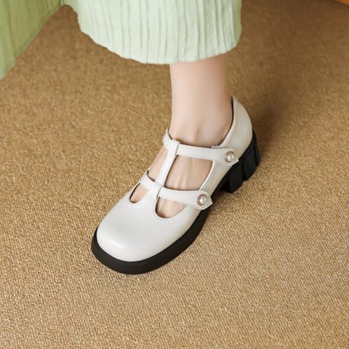 Cozivwaiy Mary Jane Platform Shoes Women Round Toe Breathable T-Strap Flats Fashion Uniform Dress Shoes 6