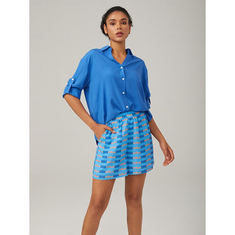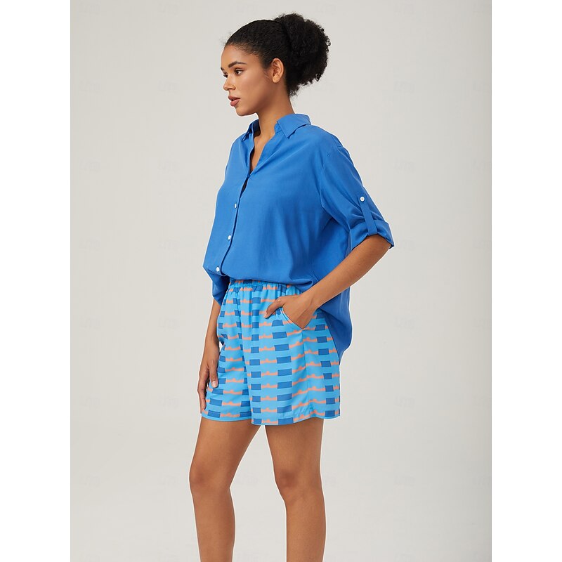 Vacation-Style Minimalist V-neck Blue Shirt 3