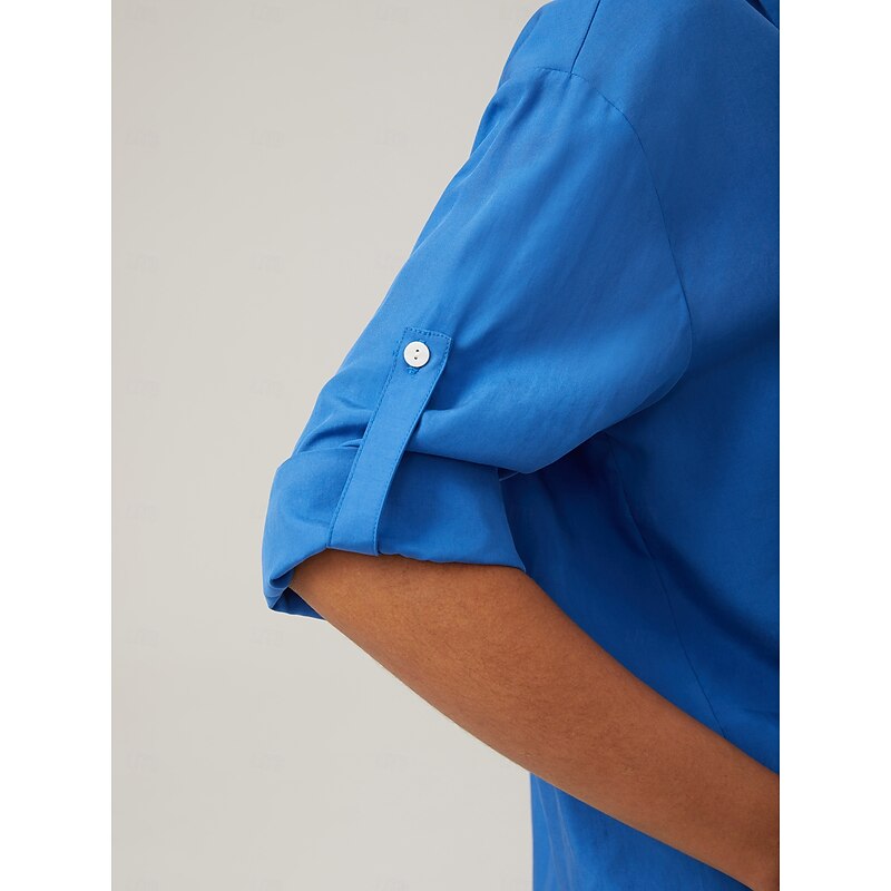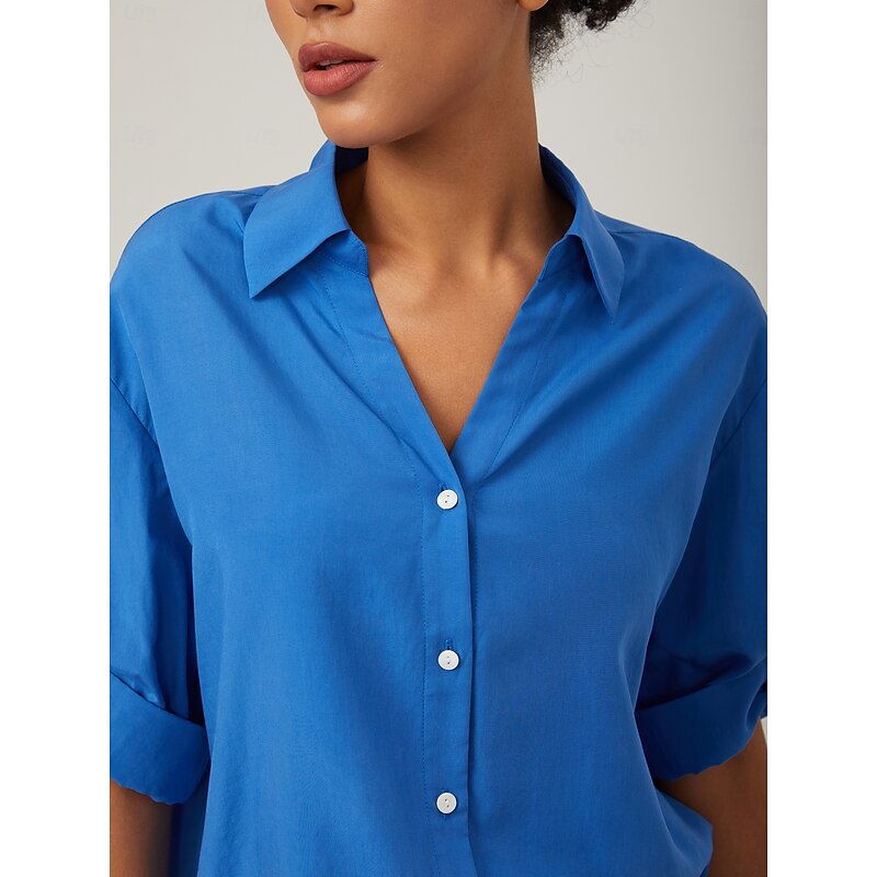Vacation-Style Minimalist V-neck Blue Shirt 4