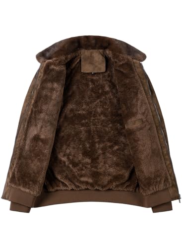 HOOD CREW Mens Faux Suede Bomber Jacket Fur Collar Vintage Leather Jackets Casual Lightweight Winter Warm Fleece Lined Coat 5