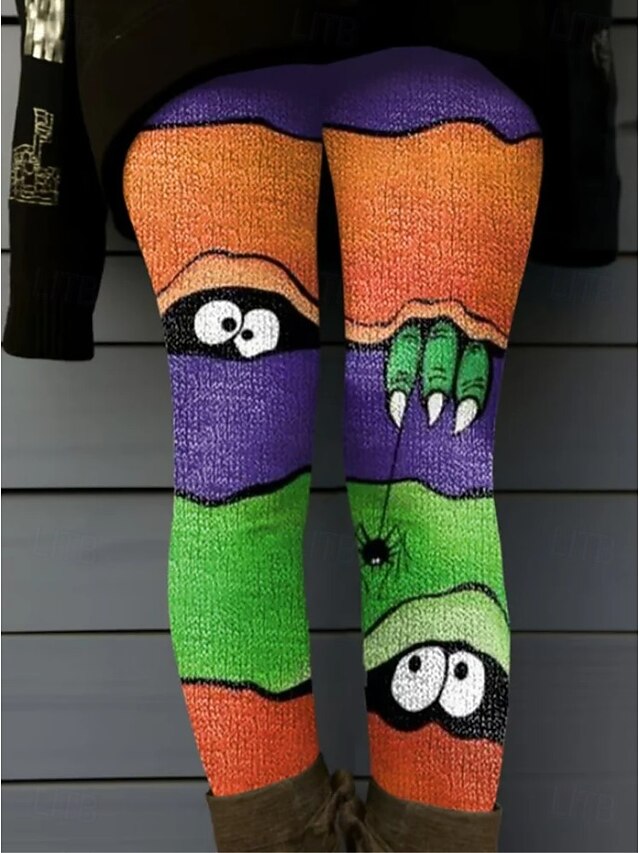 More information about Women's Leggings Vacation Vintage Fashion Full Length High WaistPantsHalloween Graphic Skull Monster Printing Soft Breathable Stretchy Outdoor Vacation Street Dark-Gray Light Brown Orange Light Grey