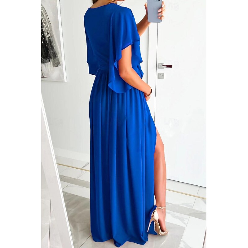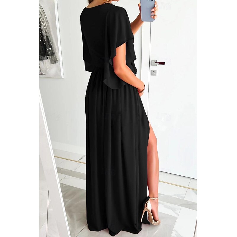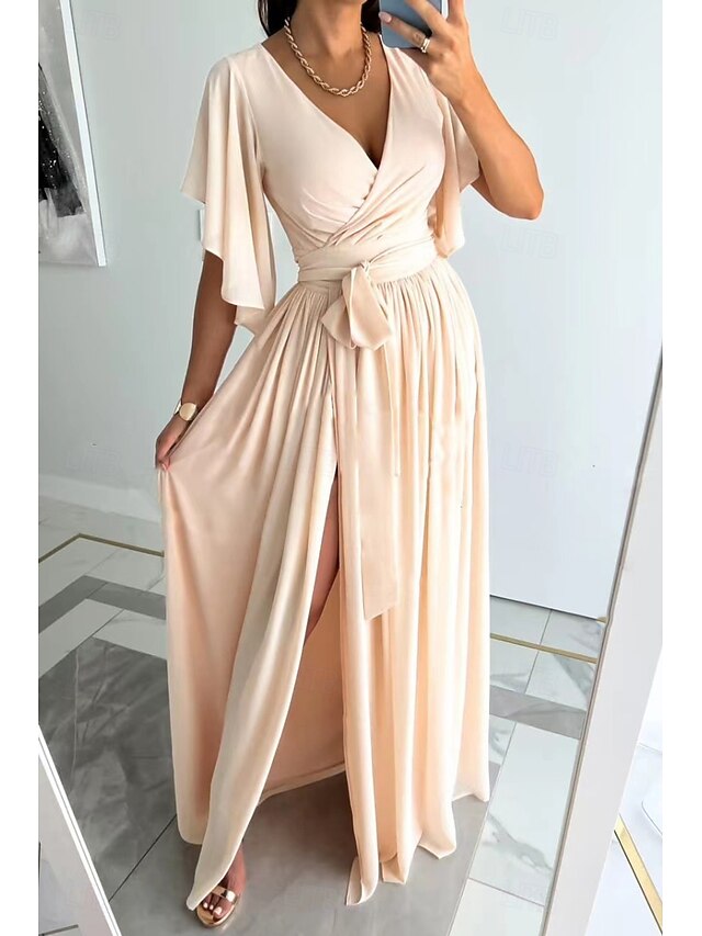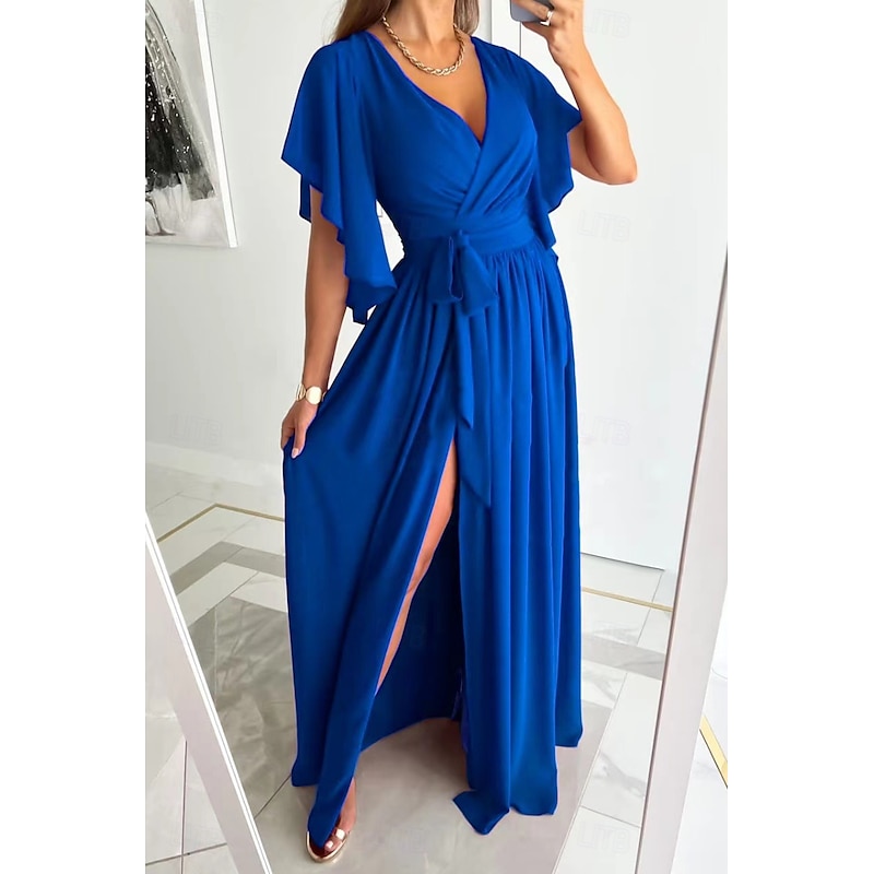More information about Women's Long Dress Maxi Dress Formal Dress Fashion Flare Cuff Sleeve Party Date Regular Fit Plain Short Sleeve V Neck Black Red Blue Khaki Summer