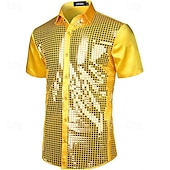 Men's Shirt Summer Shirt Casual Shirt Button Up Shirt Black Yellow Pink Red Royal Blue Short Sleeve Plain Lapel Vacation Prom Clothing Apparel Polyester Fashion Casual Comfortable 20