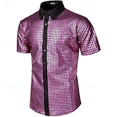 Men's Shirt Summer Shirt Casual Shirt Button Up Shirt Black Yellow Pink Red Royal Blue Short Sleeve Plain Lapel Vacation Prom Clothing Apparel Polyester Fashion Casual Comfortable 7