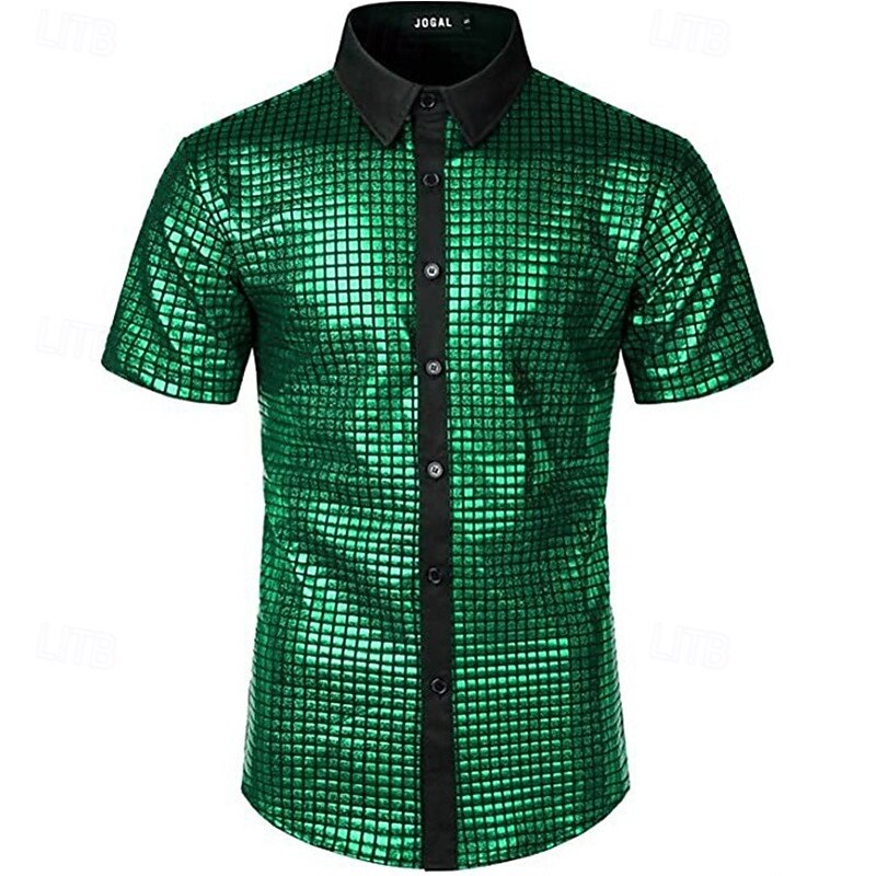 Highlights - Stay cool and stylish this summer with this casual men's shirt - Made from breathable polyester fabric, perfect for warm weather - Featuring short sleeves and a trendy lapel neckline - Ideal for vacation or any casual occasion.