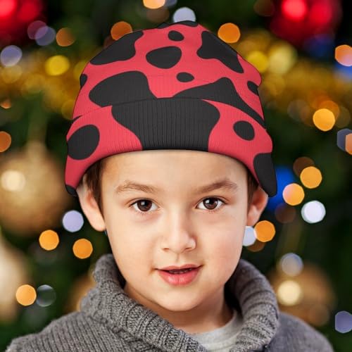 Cow Pattern Kids Beanie Hat for for Girls Boys Children Cap Winter Knitted Chemo Cancer Headwear Accessories Gifts Decoration Black 1