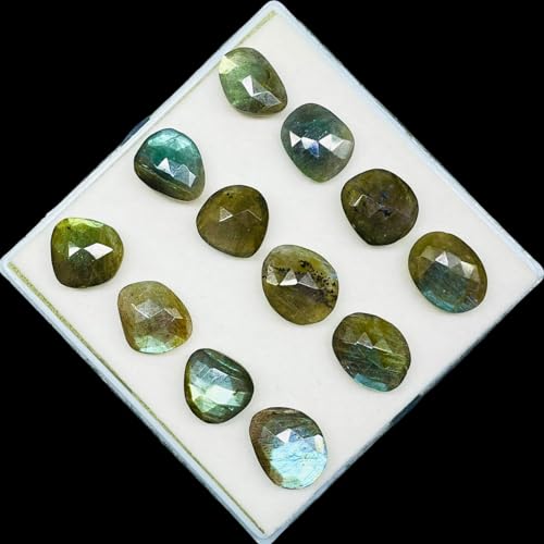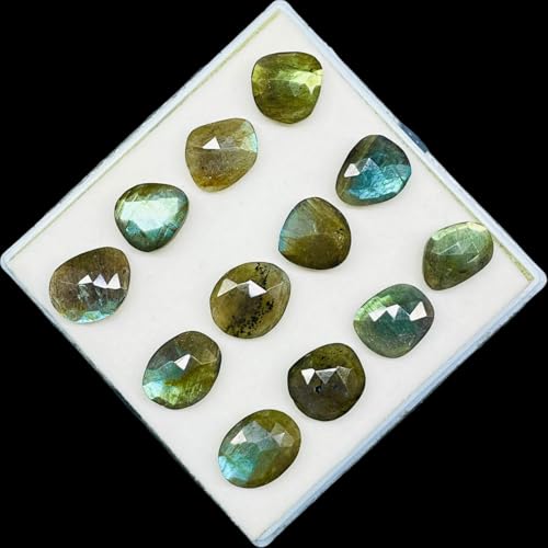 12 Pcs Natural Labradorite 16-19mm Rose Checker Cut Flat Back Loose Gemstones 1