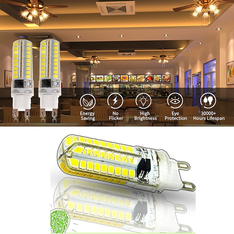 1pc 6pcs 10 Watts Silicone Coated G9 LED Light Bulb 360 Degree Dimmable G9 Light Bulb 60w Equivalent 72pcs SMD 3014 LED G9 AC220V 2