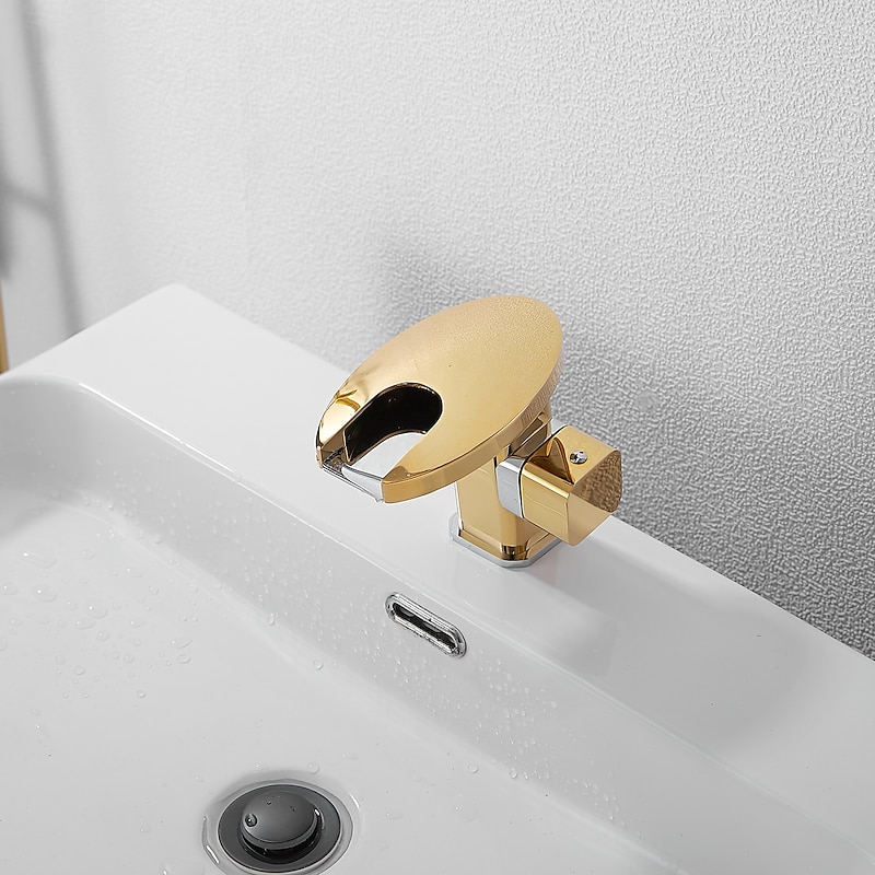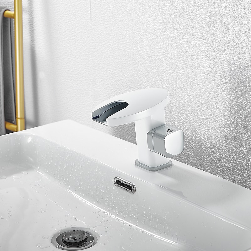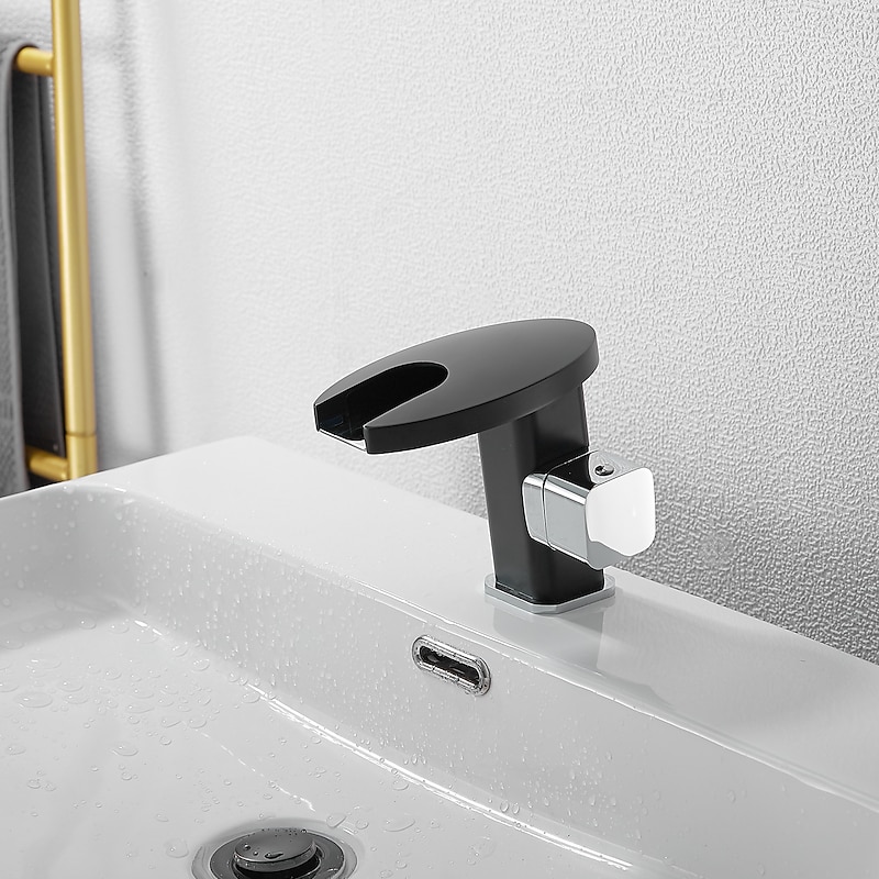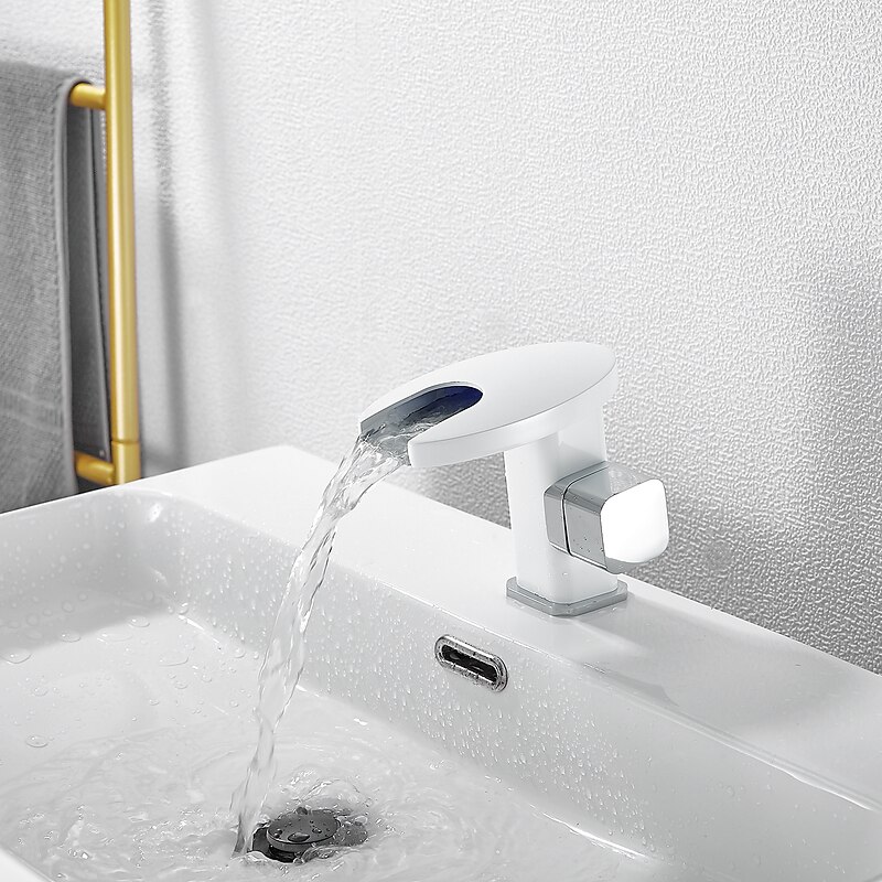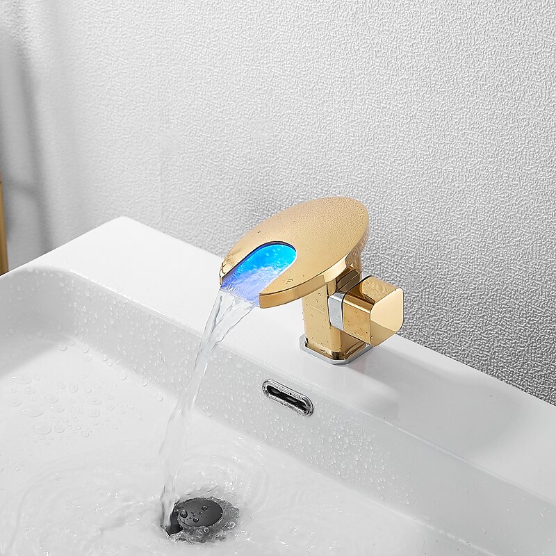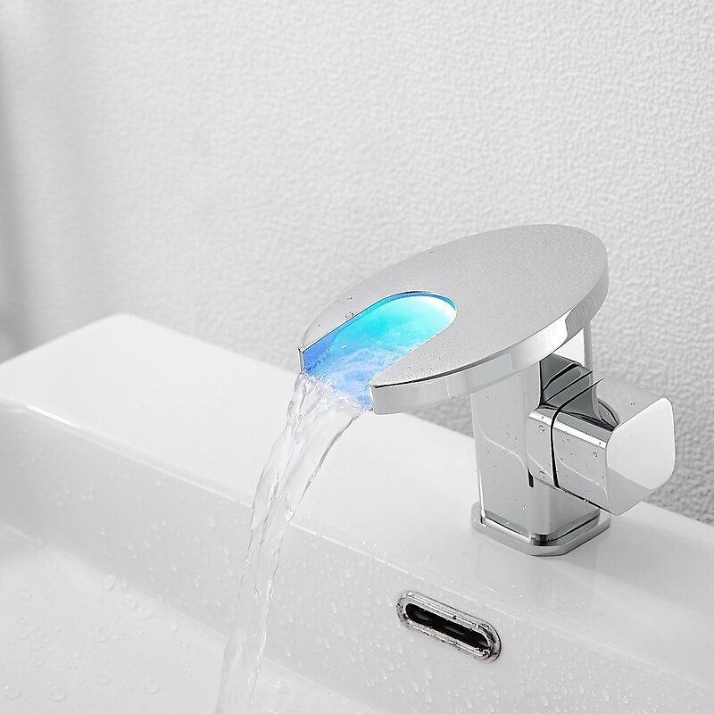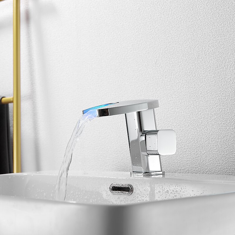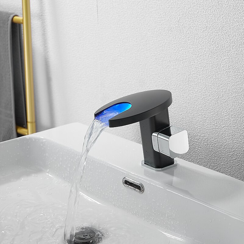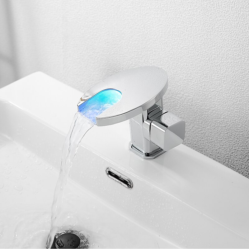 Bathroom Sink Faucet,LED Waterfall Temperature Controlled 3-Colors Electroplated Centerset Single Handle One Hole Bath Taps 1
