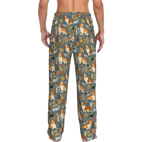 Mens Pajama Pants - Autumn Leaves Puppy Bird Print Soft Sleep Lounge Pants For Men, Casual Pj Bottoms With Pockets 6