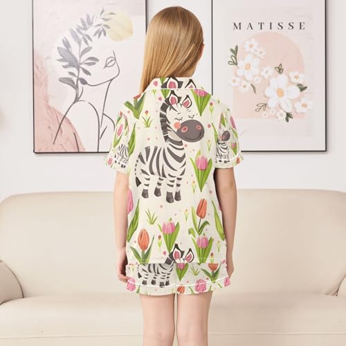 senya Cartoon Cheerful Zebra Satin Summer Pajama Sets Silk Short Sleeve Button Down Sleepwear 1