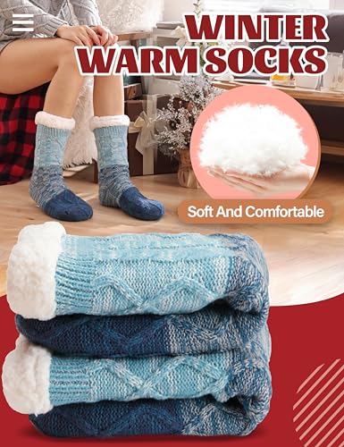 Anlisim Women Slipper Socks Non Slip Fuzzy Fluffy Thick Warm Cabin Cozy Comfy Soft Fleece Home Grips Socks 4