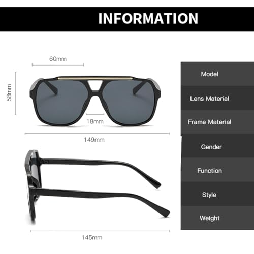 • HIGH-QUALITY MATERIAL: fashion sunglasses are made of high-quality frames. comfortable, and durable. Best-in-class sunglasses hinges and integrated nose pads reduce pressure on the nose. All the quality details will ensure you a perfect wearing experience.