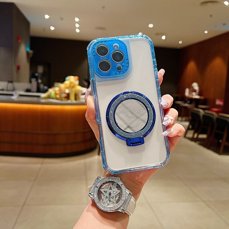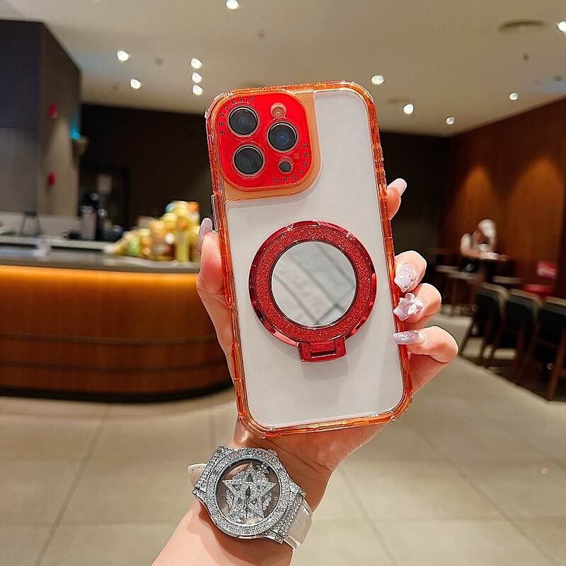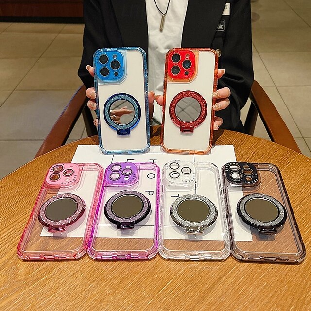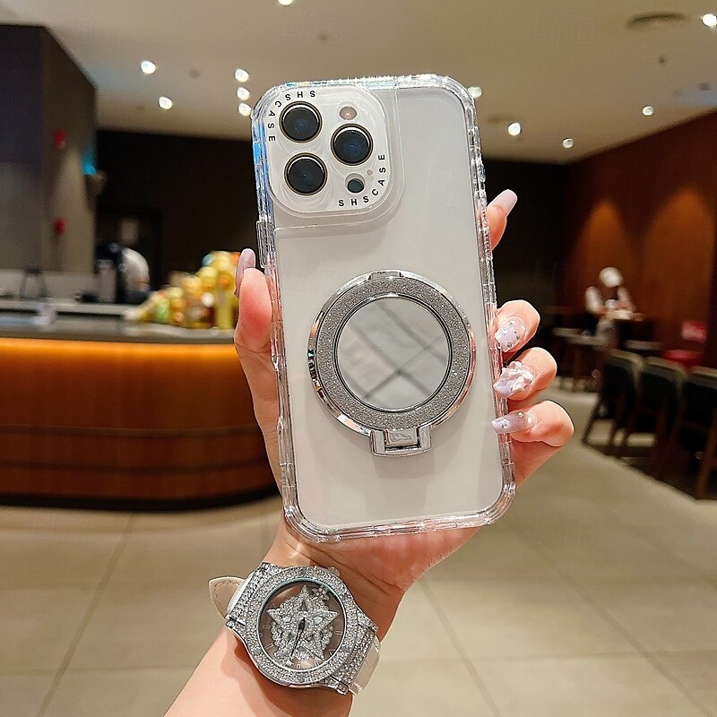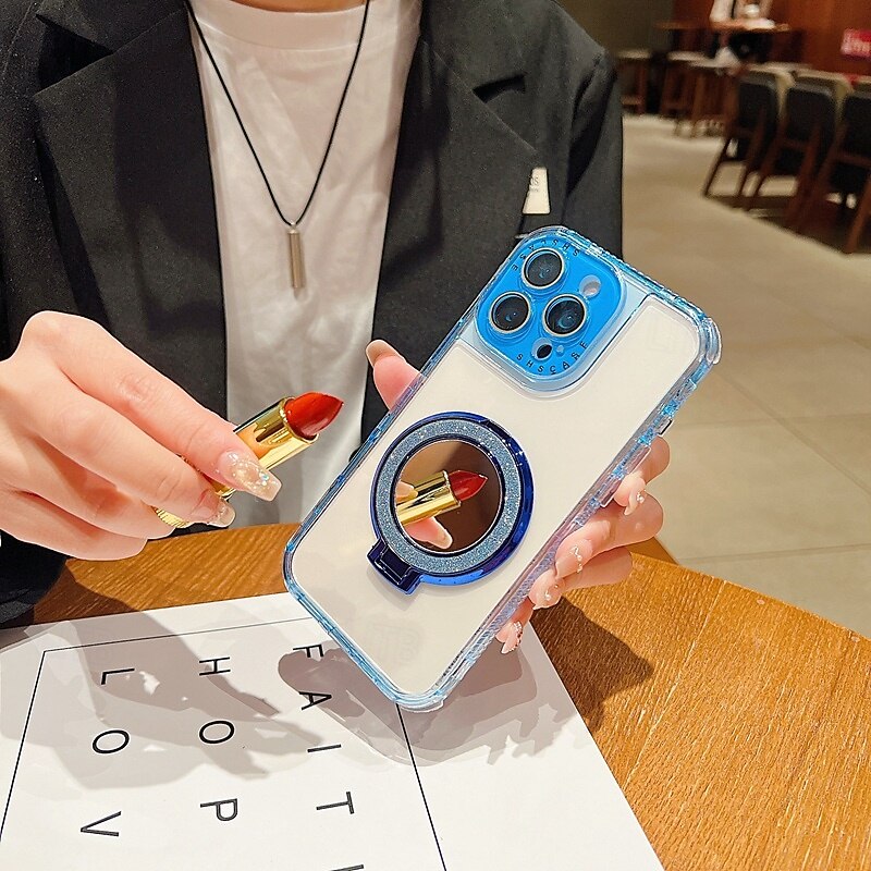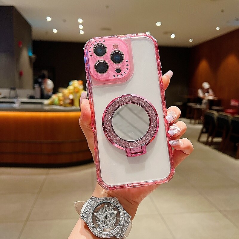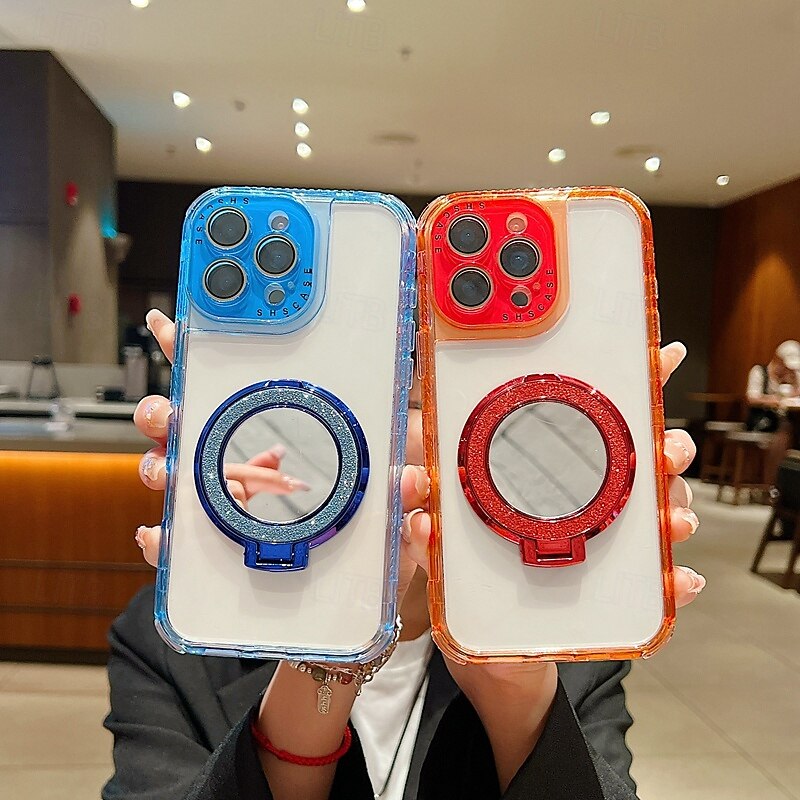 HOT ! Phone Case For 16 15 14 Pro Max Plus 16e 13 Pro Max Back Cover Mirror Kickstand Shockproof Retro TPU PC