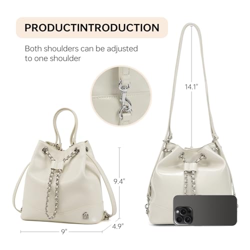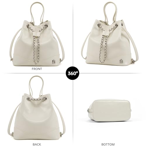 LA FESTIN Leather Purses for Women Cute Backpack Lightweight Shoulder Small Trendy Bucket Handbags with Strap Silver Chain (White) 5