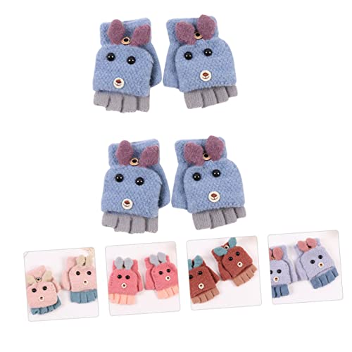 2pairs Half Finger Knitted Gloves for Boy Girl Cartoon Dog Design Cover for Writing Random Colors Warm and Comfortable for Use 3