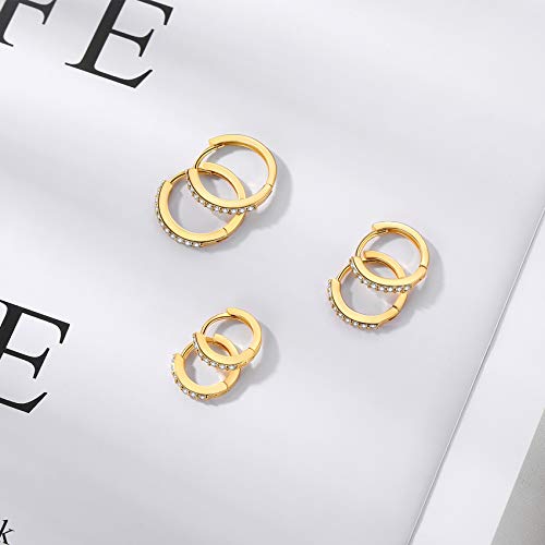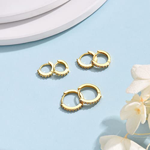 • SMALL HUGGIE HOOP EARRINGS SET: Simple classical Cubic Zirconia hoop design, including 3 Pairs a Set, Color: gold, Inner diameter: 6mm/8mm/10mm(0.23"/0.31''/0.39''), multi-size meet your daily needs, suitable for Women Men. Please note that 6mm hoop is mini, suitable for Cartilage Helix Piercing Hoop. WARMING NOTICE - This earrings are not suitable for users under the age of 12.