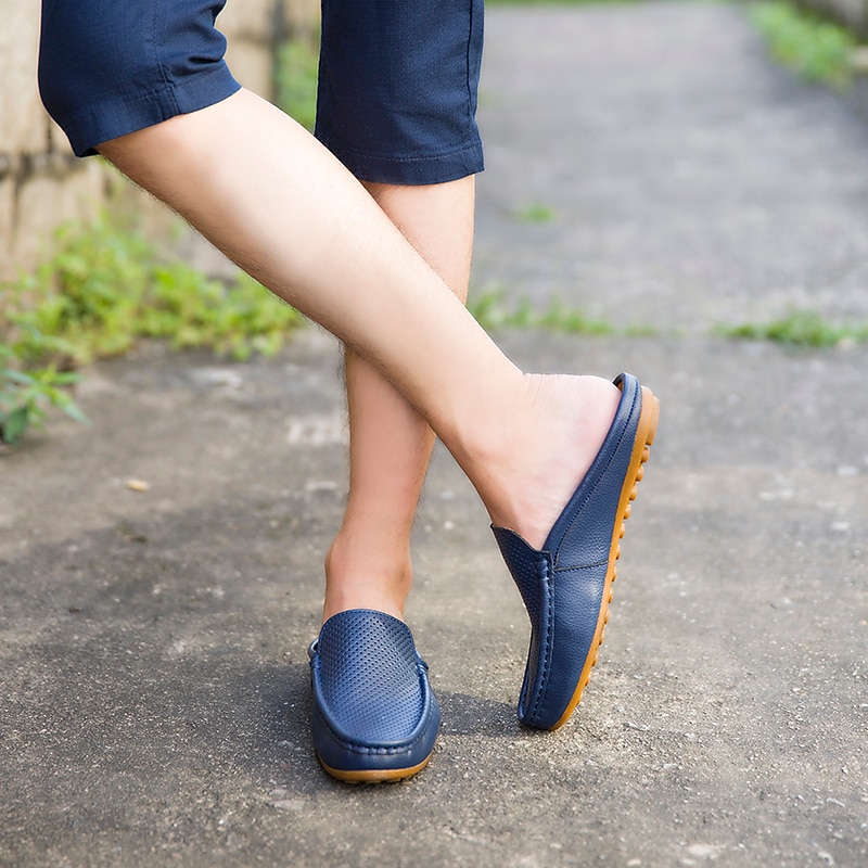 More information about Men's Blue Faux Leather Mule Loafers – Slip-On Driving Shoes with Perforated Upper for Casual Outings, Travel, and Summer Wear