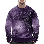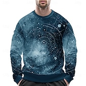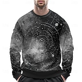 HOT ! Men's Universe Sweatshirt Casual Long Sleeve Crew Neck Black Blue Crewneck 3D Print 3D All Seasons Designer