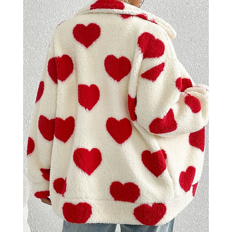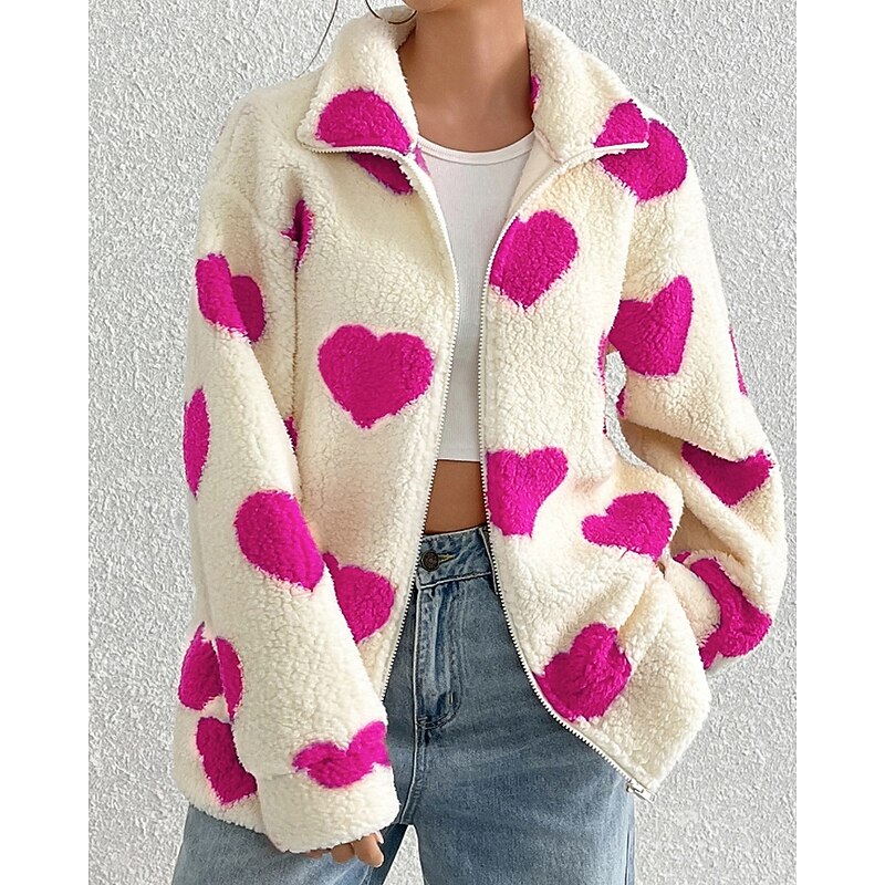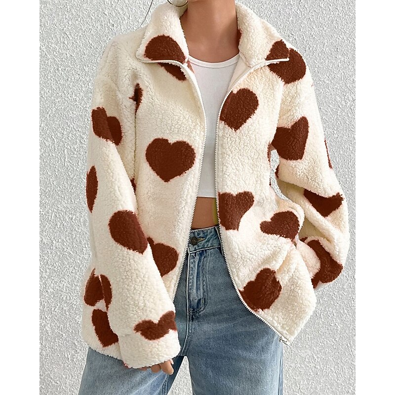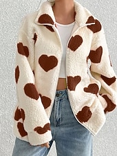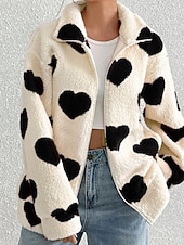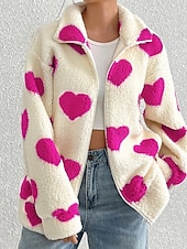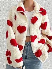 More information about Women's Teddy Coat Warm Comfortable Zipper Casual Heart Vacation Daily Wear Going out Weekend Regular Stand Collar Loose Fit Long Sleeve Outerwear Black Red Khaki Fall Winter