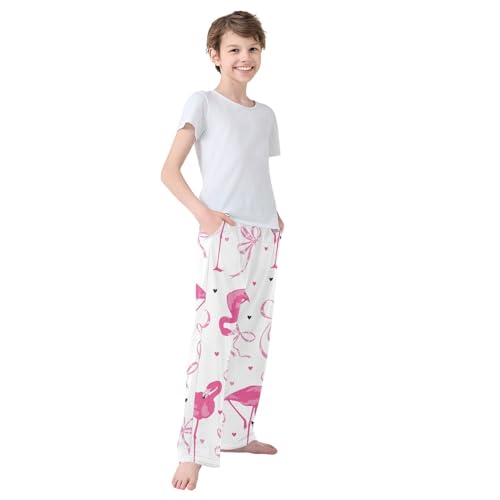 Flamingo Bow Boys Pants Boys Athletic Pants Long Pant for Boy with Pockets Wide-Leg Size 6-14Y 6