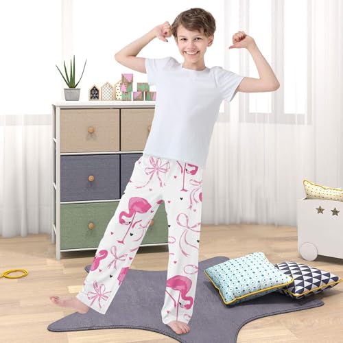 Flamingo Bow Boys Pants Boys Athletic Pants Long Pant for Boy with Pockets Wide-Leg Size 6-14Y 5